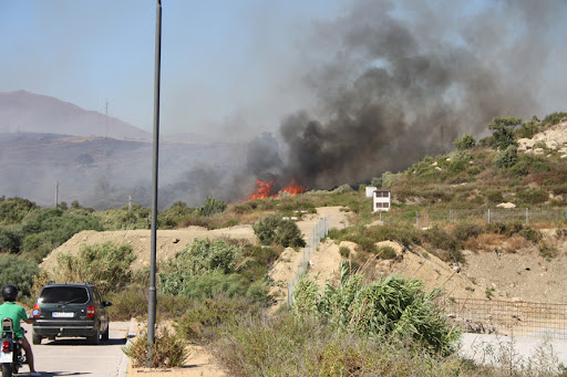 The bush fire that started in the El Chaparral district of Mijas Costa was fought by 12 aircraft and firefighters from towns all along the Costa del Sol. The blaze, first spotted around 7.30pm yesterday (Friday) rapidly spread, fanned by strong winds. Mijas council opened the La Cala sports centre as an emergency shelter for those fleeing the flames. By 8pm the fire around the original hotspot at El Chaparral was under control, but it was spreading quickly from a new hotspot towards the Cerrado de Aguila golf course and urbanisation. It had spread past the lush fairways of El Chaparral golf which may have helped protect the homes on the nearby urbanisation. A firebreak was bulldozed near a secondary school – the flames had come to within 100m of it and were perilously close to a Eucalyptus wood just over the road from the CEIP El Chaparral. INFOCA (forest fire control service) said there were three hotspots, the main one being at El Chaparral, another at nearby La Roza and the third near the hipodromo horse racing track.